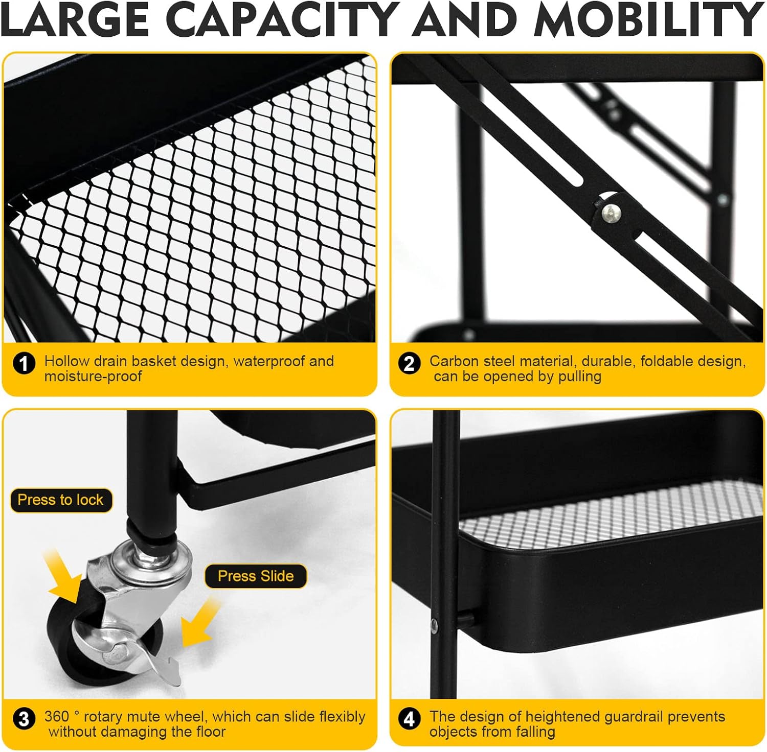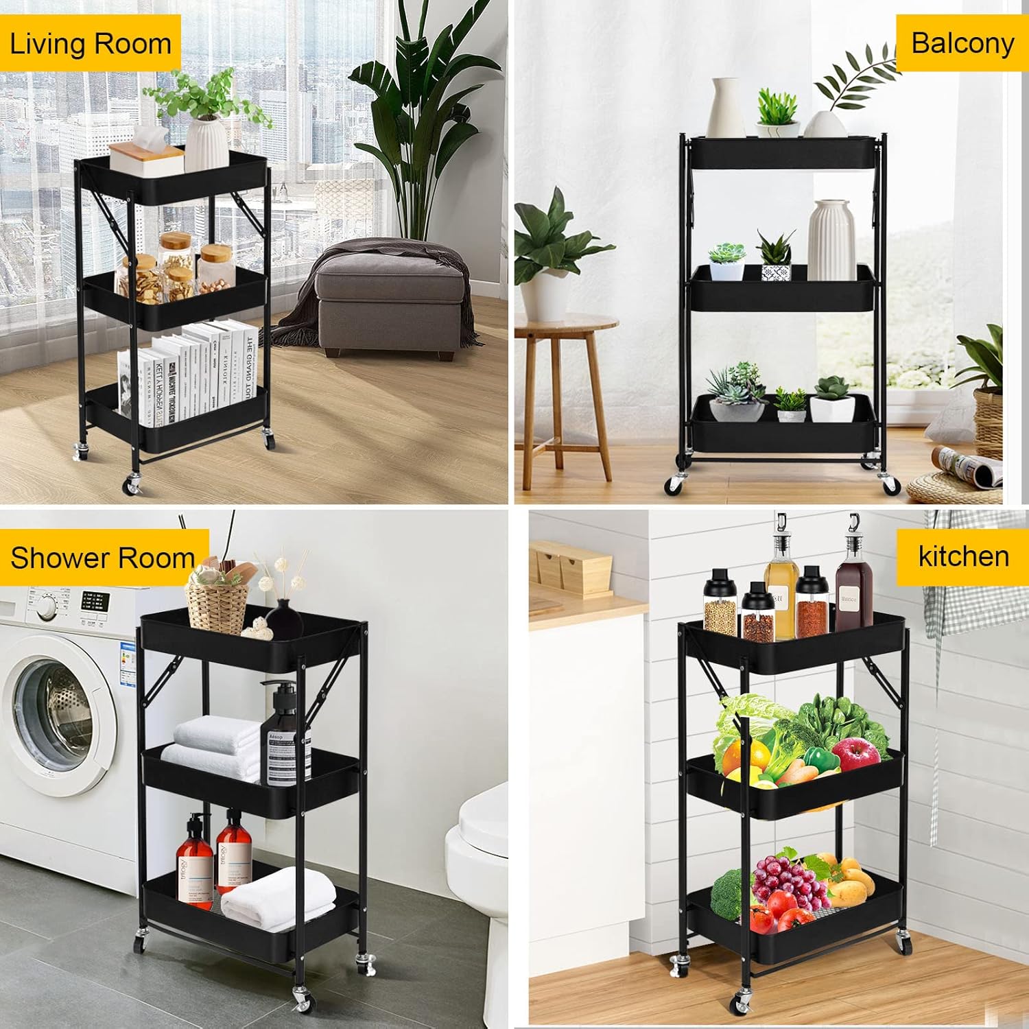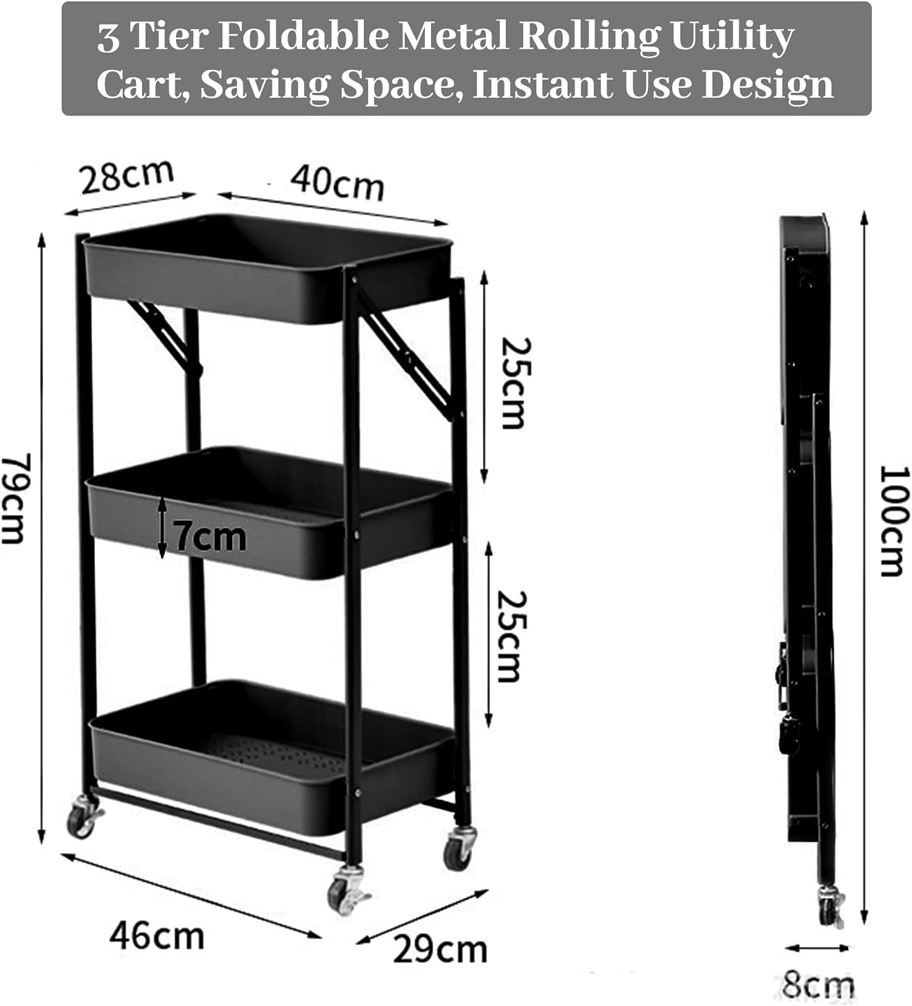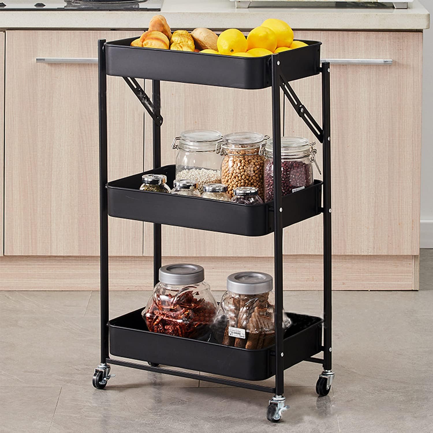 3-Tier Foldable Storage Cart with Wheels - Practical and Organized