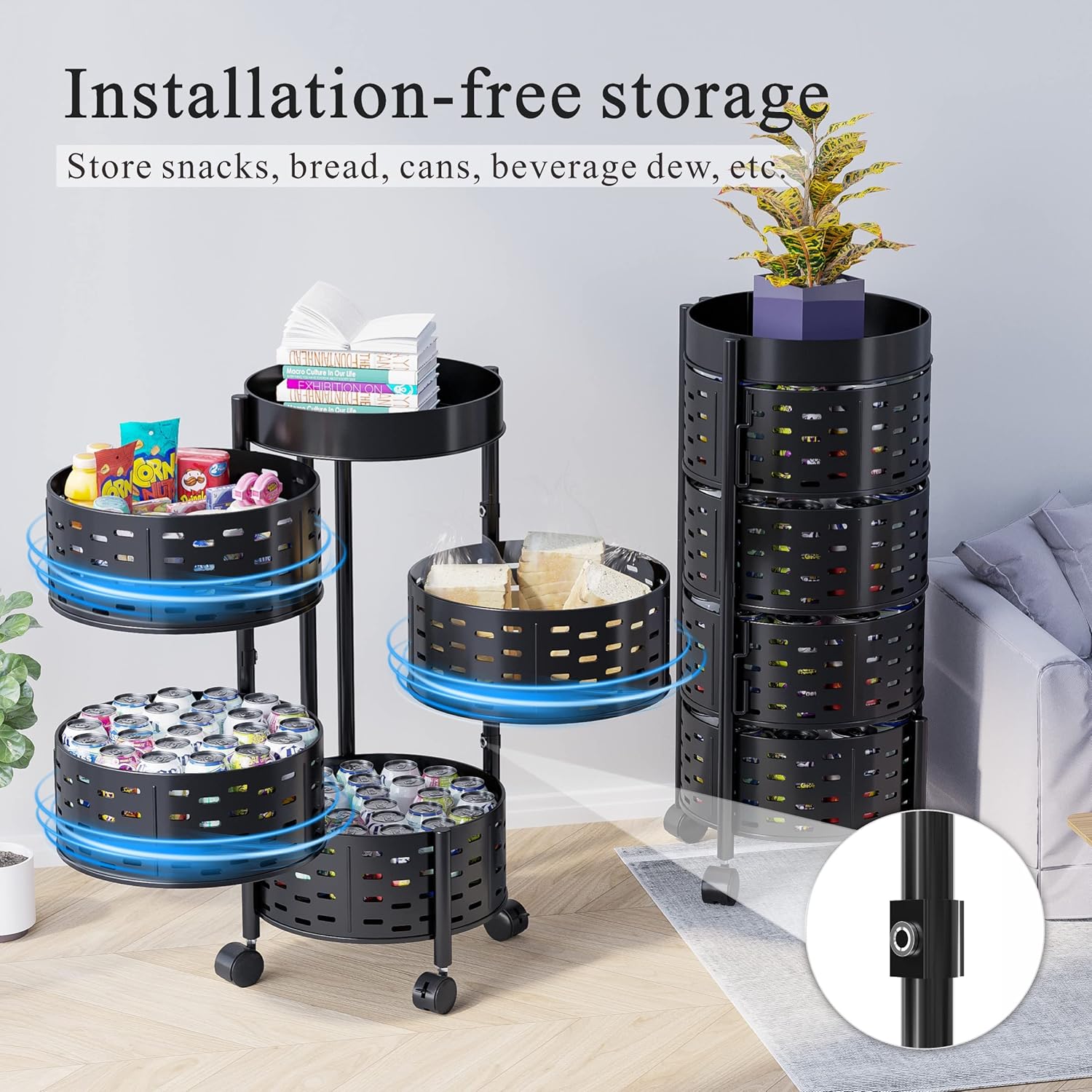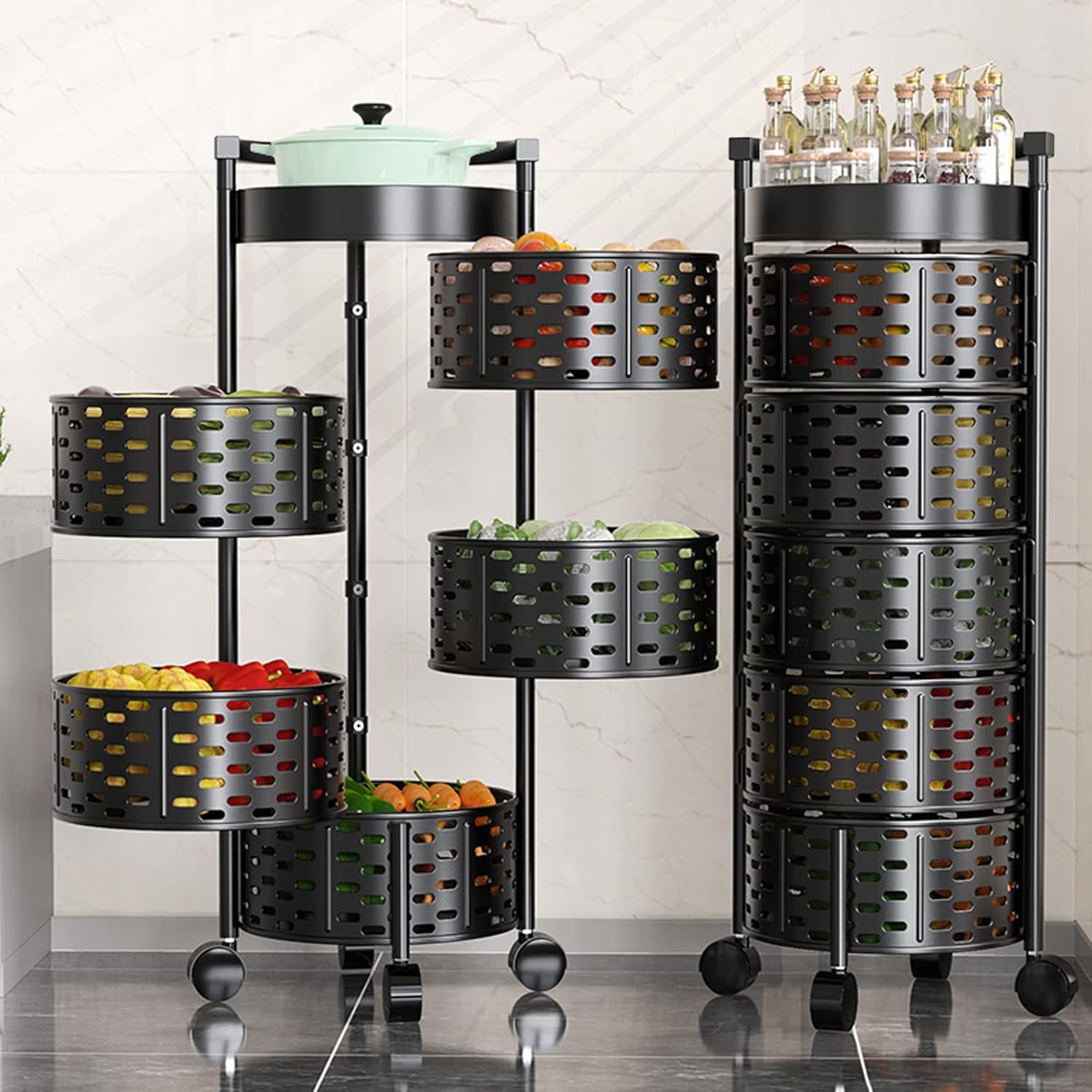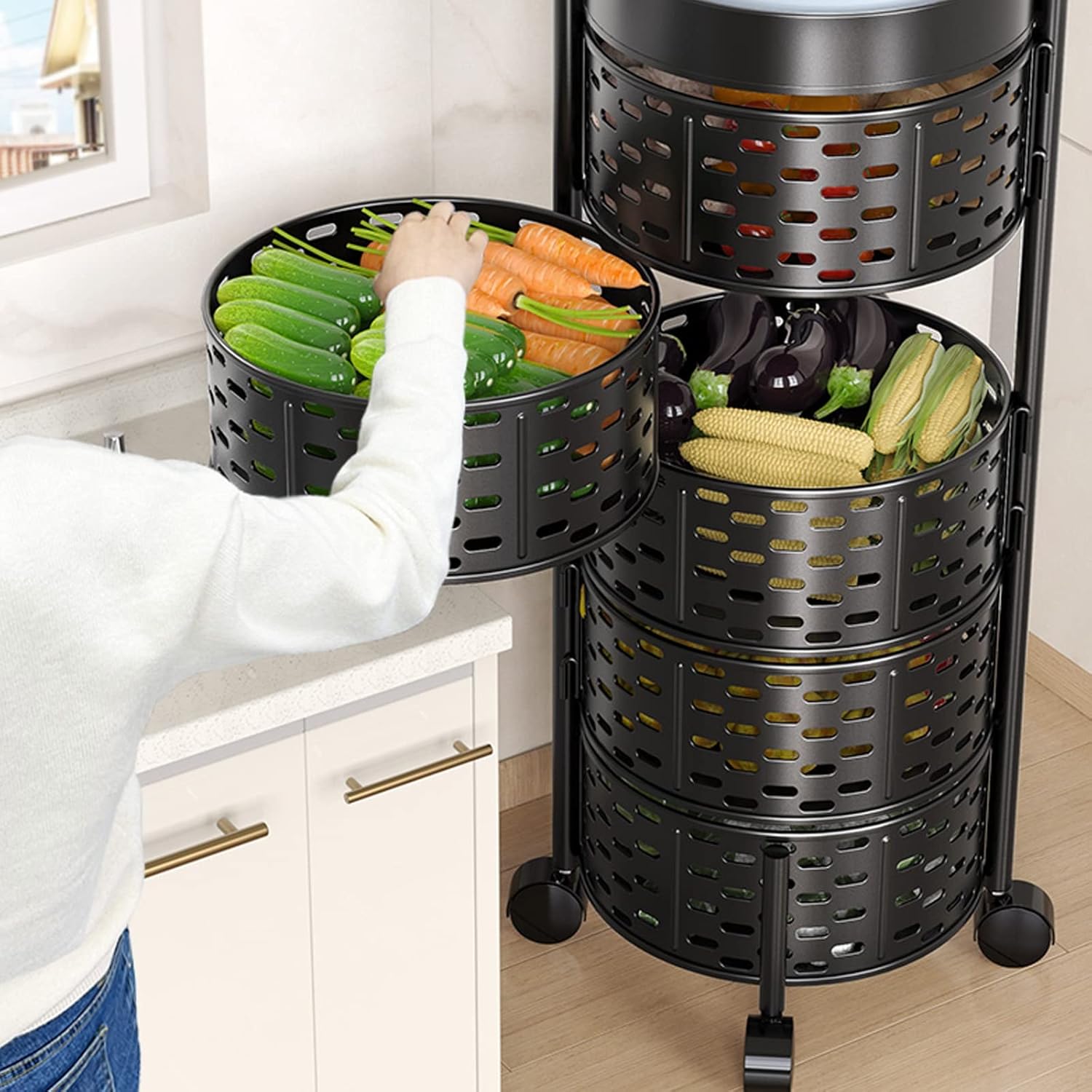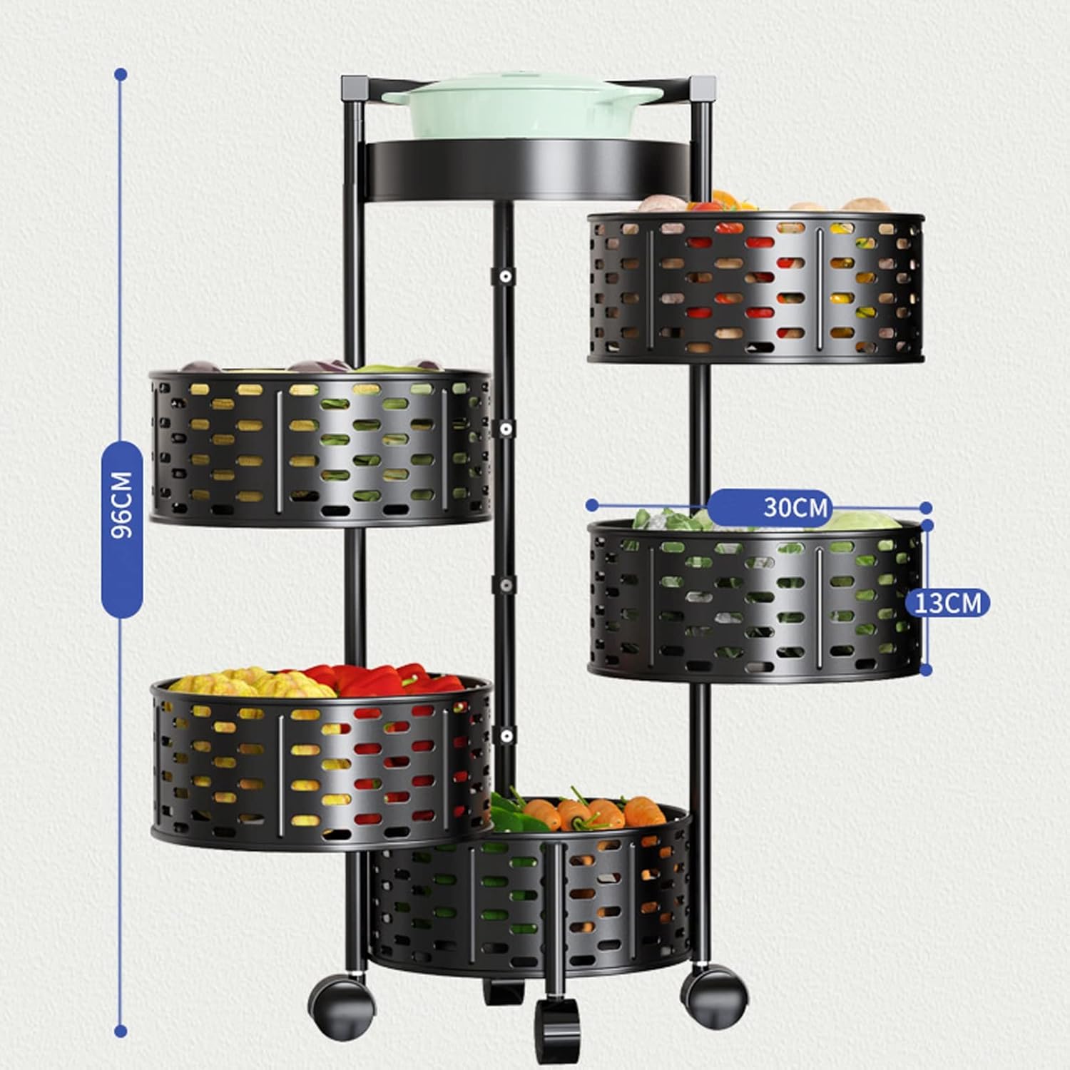5 Tier Round Rotating Fruit and Vegetable Basket Rack